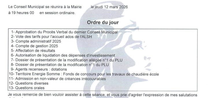 Voici la liste des délibérations de la réunion du conseil municipal qui s’est tenue le 20 mars 2026. Le procès-verbal du conseil municipal du...