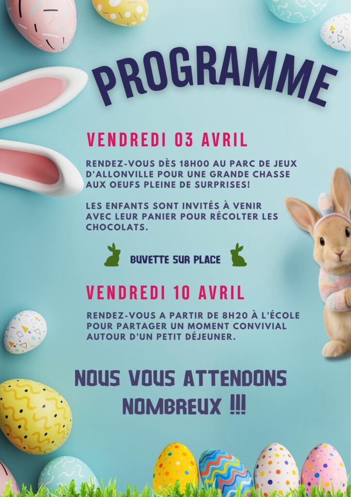 Alerte gourmandise ! L’APEA vous invite à sa traditionnelle chasse aux œufs. Préparez les paniers, l’aventure chocolatée débutera le vendredi 03 avril ! On vous donne rendez vous à 18h au Petit Parc de Jeu d’ Allonville!