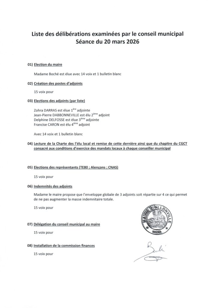 Voici la liste des délibérations de la réunion du conseil municipal qui s’est tenue le 20 mars 2026.